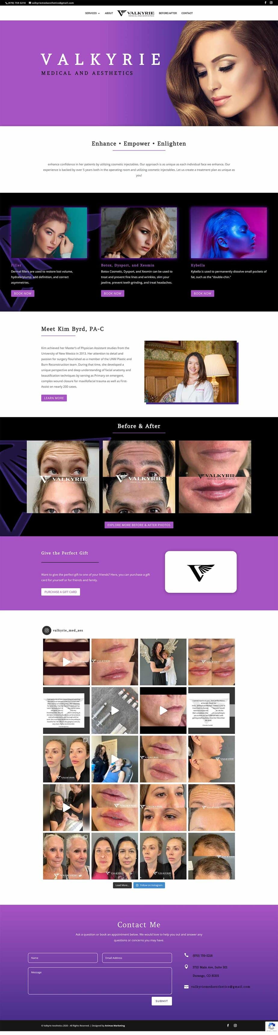 Valkyrie Aesthetics is a medical cosmetic injectables business founded by Kim to empower and build confidence with women in the Four Corners area. As a brand-new business, they needed a website to kickstart their brand and establish credibility.